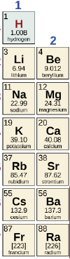 The first group (1) are called alkali metals. though hydrogen is not a metal, it does have some commonalities with the metals below it, which we’ll learn later.