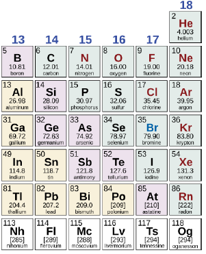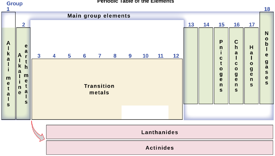 Groups 1, 2, and 13-18 (8 total groups) are the main-group elements. These are the elements we’ll work most with during the semester.