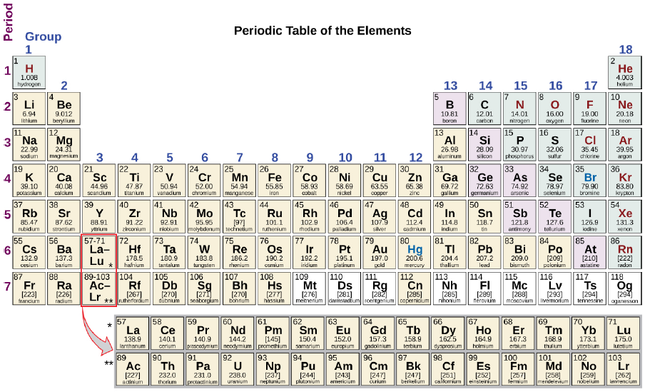 The Periodic Table organizes all known elements into rows and columns. Rows are called periods and columns are called groups. In the current table, there are 7 periods and 18 groups.