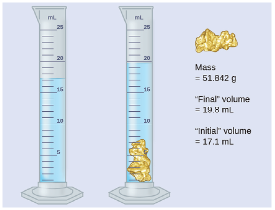 Measuring the volume of a small, irregular shaped object is quite accurate by the volume displacement method shown above.
