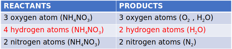 2 NH4NO3 ➞ 2 N2 + O2 + 4 H2O