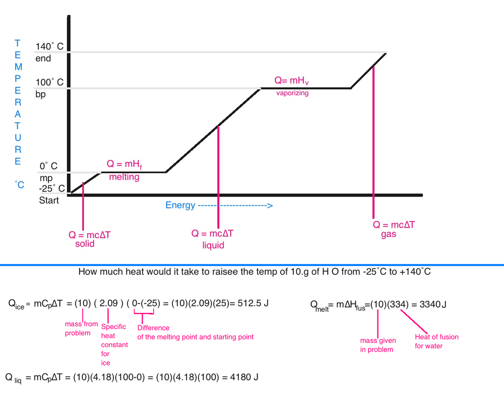 These horizontal lines are the "Phase Changes." Even though we are adding heat, the temperature stays exactly the same. Why?